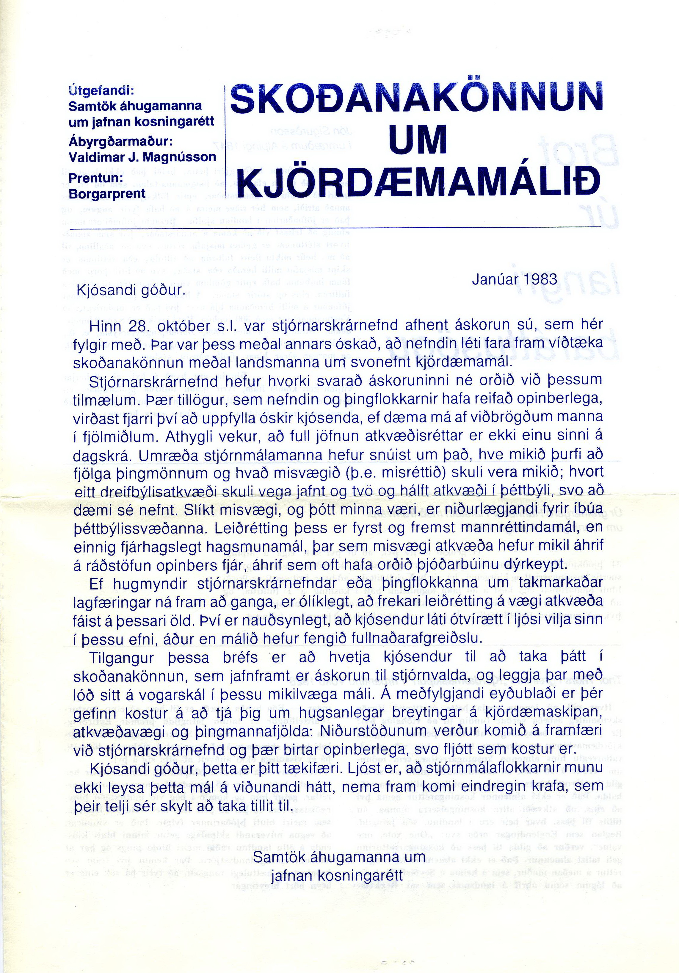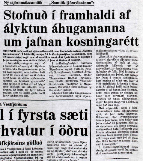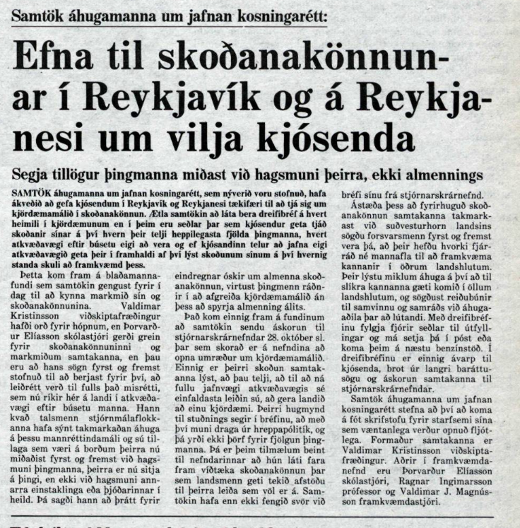 fundinn höfðu Samtök áhugamanna um jafnan kosningarétt látið