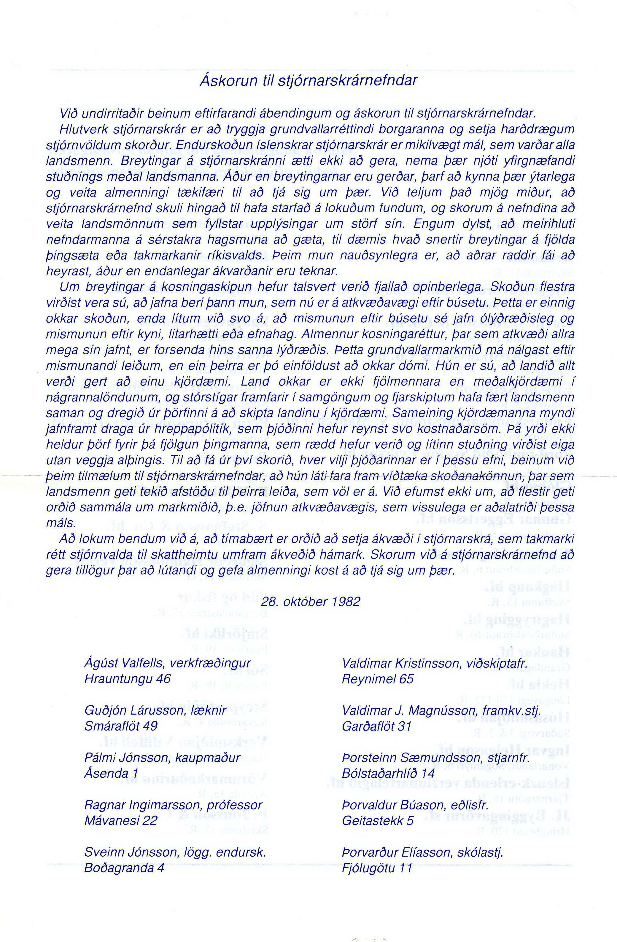 Þessi áskorun var afhent Gunnari Thoroddsen forsætisráðherra 28.