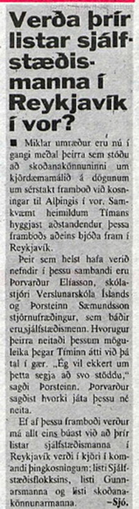 sem myndi skaða Sjálfstæðisflokkinn. Þremur dögum síðar kom Jón Baldvin