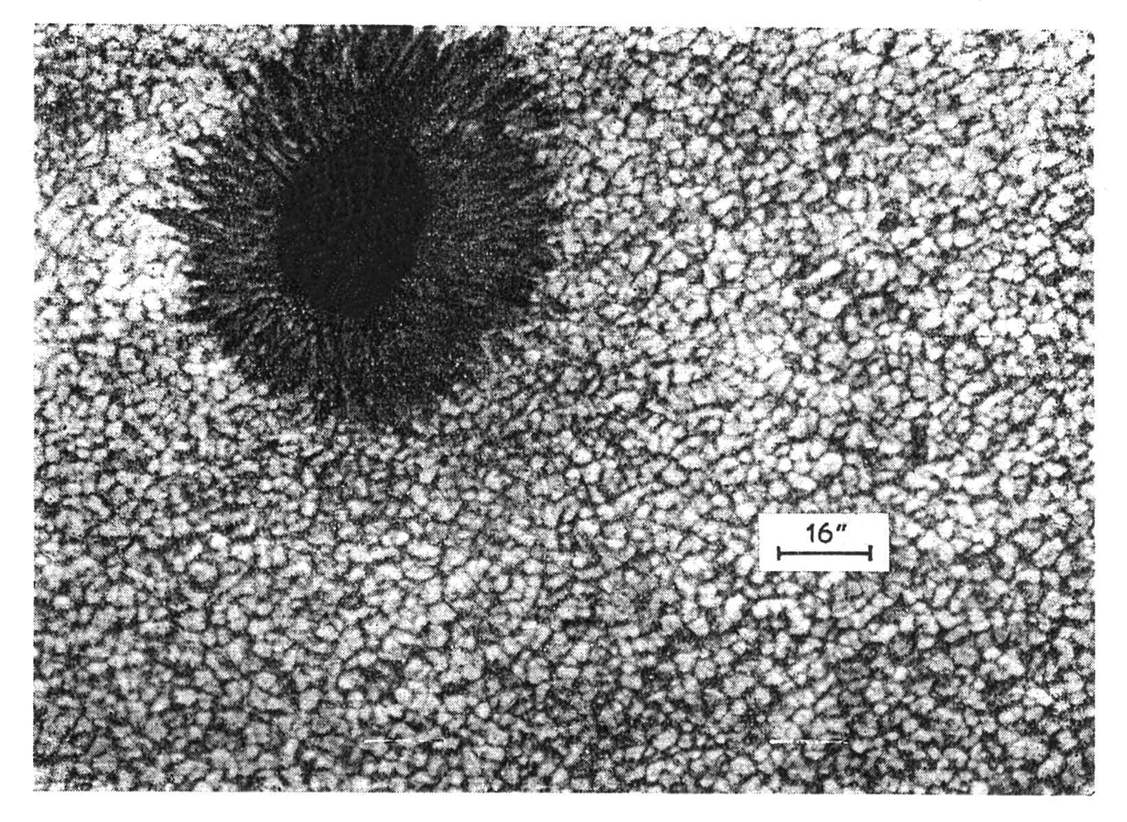 stóran sólblett og svonefndar ýrur sem einkenna yfirborð sólar.